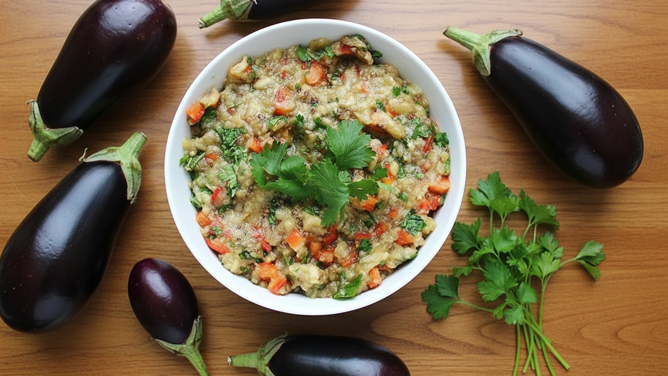 A simple, fresh, and delicious eggplant salad — perfect as a side dish, spread, or healthy snack!