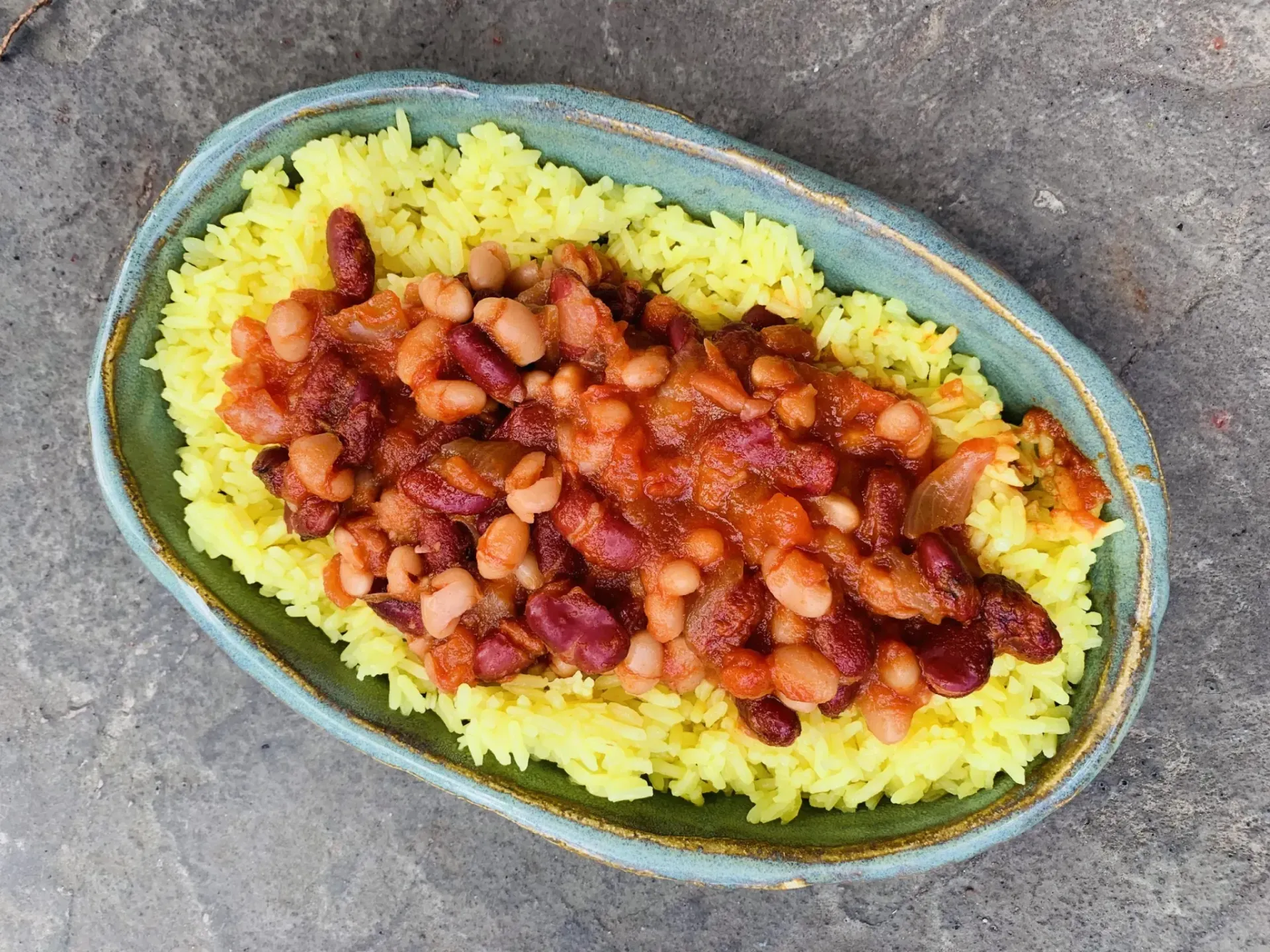 You can eat the beans mixed with the rice, or enjoy them separately — both ways are absolutely delicious!